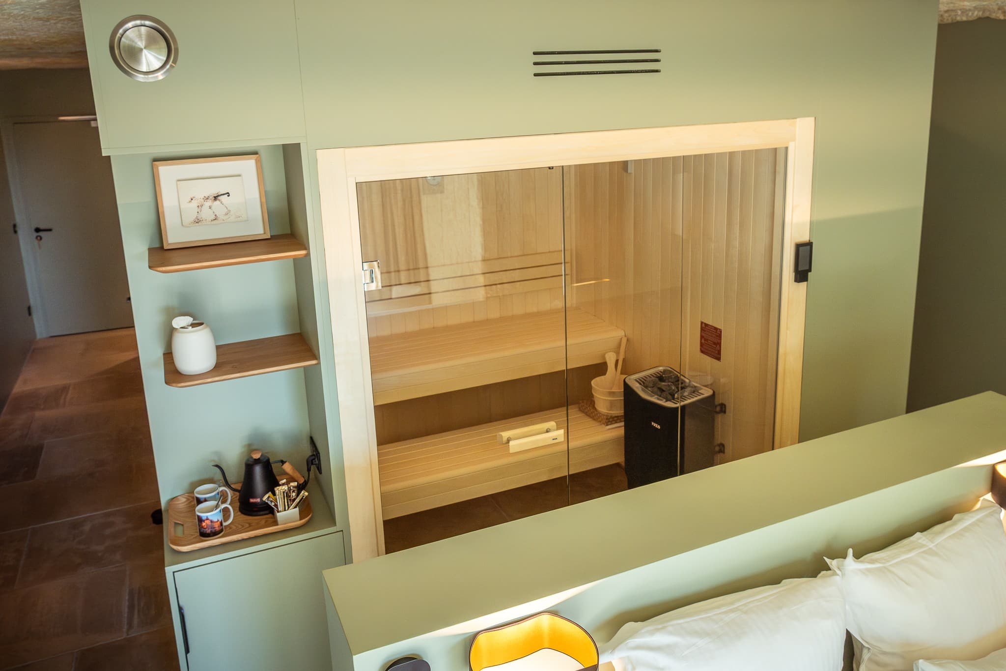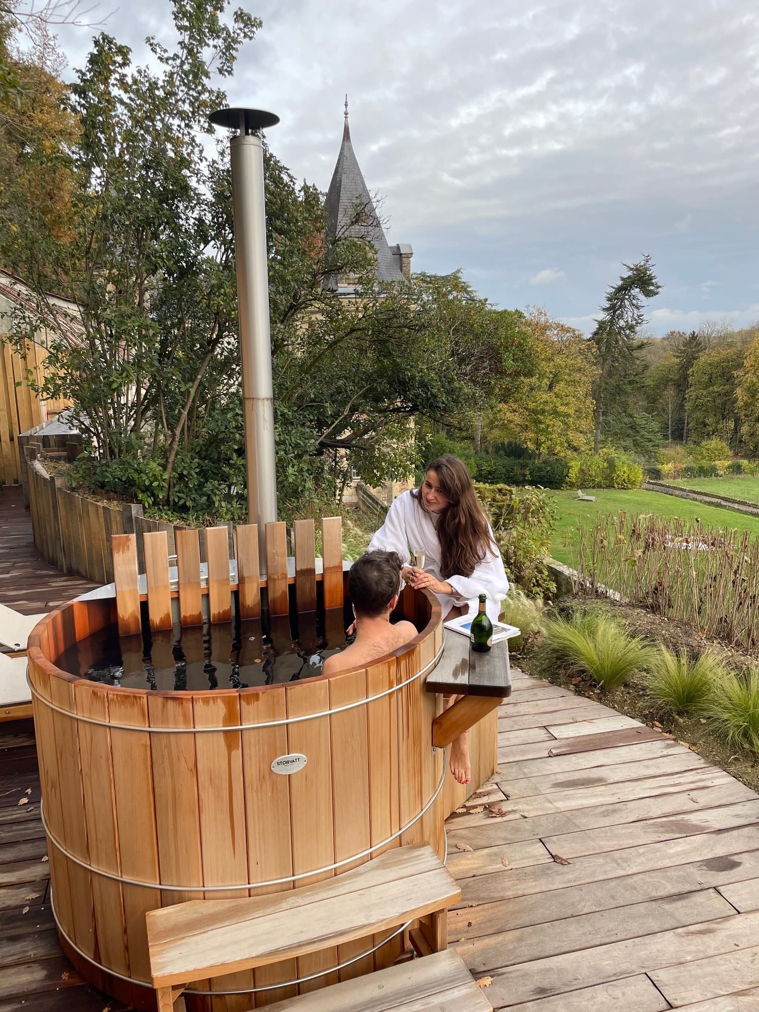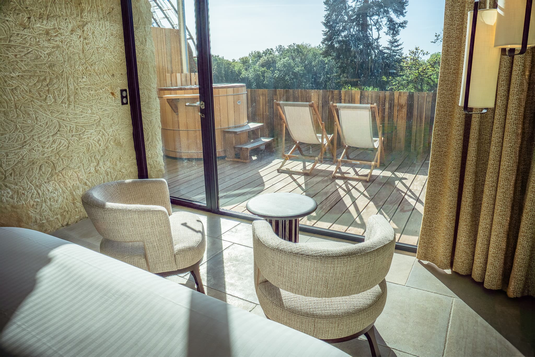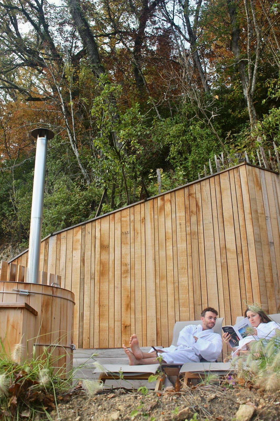 Elles possèdent chacune un sauna intérieur ainsi qu’une terrasse privative munie de son propre bain nordique chauffé au bois.